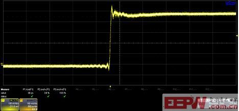 下图6和图7显示的是WaveMaster 816Zi示波器分别采用Flat Mode和Eye Mode响应优化方式对同一阶跃脉冲实际测量结果的对比,可以看出,Flat Mode可以得到更快的上升时间,但过冲和前冲也都相对较大;Eye Mode 测量的上升时间较慢,但过冲和前冲也都相对较小。