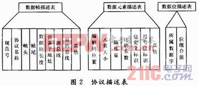 为便于协议的识别、编解码,建立由数据帧、数据元素、数据位三级描述结构体组成的协议描述表,各级协议描述结构体所描述的信息如图2所示。
