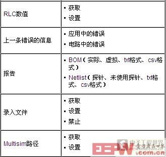 ltisim仿真,需要定义某些元素以供最终轮询原理图确定输入与输出数值。 利用该API,您能够设置一个信号源的数值。在下面的原理图中,输入值是电流源与电压源(如V2)。在Multisim原理图中,在您将需要该自动化API能够调整或设置输入数值的任意位置,放置一个DC或AC电源。该DC或AC电源创建了Multisim仿真引擎与自动化程序之间的连接。 放置一个DC或AC电源的步骤包括: 1. 选中放置>>组件。 输出用布置在需要进行分析处理的节点上的探针表示。这些探针及其所采用的名称指定了相应的自动化应用——将从原理图中采集仿真数据的节点。 放置和识别探针的步骤包括: 1. 选择仿真>>仪器>>测量探针。 自动化 完成电路设置后,就该开始实现该仿真的自动化了。自动化是基于Active-X实现的,而且,这些Active-X控件支持您与C、Visual Basic和LabVIEW等编程语言连接,并从Multisim原理图或Multisim仿真采集数据。 下面我们看到的LabVIEW中的一小部分代码是基于Active-X实现与Multisim的连接。 LabVIEW Multisim连接工具包 LabVIEW Multisim连接工具包(β版)是一组面向Multisim自动化API的封装程序。各种函数,如打开、关闭和查看电路的函数,以及运行、暂停和停止仿真的函数,均已包含在VI中。这就意味着可以利用标准的LabVIEW编程实现自动化,而不是必须访问Active-X控件(如上所示)。 如欲下载和安装该连接工具包,敬请访问ni.com/labs按照相关说明下载。 如果成功安装,您可以在连接函数选板(如下所示)内看到LabVIEW Multisim连接工具包,并可以通过函数>>连接>>Multisim选中该工具包。 工具包函数 下表描述了工具包中所有的各种子选板、其相关的VI及其一般用途或功能特性。 多态函数 为了更为方便地设计,许多LabVIEW函数是多态函数,这意味着单个组块根据“个性化”设置不同具有多项功能。例如,如果我们查看下面的记录文件函数,它具有三种特性: 1. 获取记录文件路径 下表展现了所有各种可用的多态函数及其相关特性: 该工具包的应用 下面我们可以看到关于如何设置AC分析的一个小型范例。其代码几乎完全是基于上面提到的LabVIEW Multisim连接工具包VI。您将注意到LabVIEW实现编码的方式是基于从一个函数到另一个函数的“数据流”的。通过仅选择一些基本的连接VI,您就可以采集仿真数据。 该代码的基本流图从左至右,执行下列功能: 1. 连接至Multisim自动化API(Multisim连接选板) 利用LabVIEW连接工具包的Multisim自动化的用例 现有三个主要的针对仿真自动化与LabVIEW Multisim连接工具包的用例: 1. 单个环境中的仿真与验证的自动化 仿真与验证 凭借LabVIEW所提供的与硬件的直接连接,可以方便地在单个环境中采集真实测量数据和仿真测量数据。两组测量数据利用同一个接口,LabVIEW可以用于比较仿真测量数据和真实测量数据,以验证一个物理原型系统相对于仿真结果的性能。 这体现了一种非常简单却很强大的基于最初设计规范来标定原型系统的性能的方式。这就是所谓的集成设计与测试。 了解更多信息 1. 观看一个关于利用Multisim自动化与LabVIEW改善电路设计的网络播放。 自动化仿真意味着可以有效地设置复杂的分析。例如,如果希望观察组件赋值的改变对电路设计产生的影响,可以通过LabVIEW自动运行Multisim,并不断变换各种组件的赋值以绘制、观察和分析其影响。 类似的,如果必须在不同电路上执行多项分析,而且其各种输出必须可供管理者使用并可供其它工程团队决策参考,LabVIEW也可以自动化实现仿真并显示数据。 在线仿