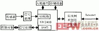 目前,大多数远程测控系统中,系统的硬件采用8/16位的单片机,软件多采用汇编语言编程,该编程仅包含一个简单的循环处理的控制流程;单片机与单片机(或上位机)之间的通信通过RS232、RS485或CAN总线来组成局域网,再用Pc机作为 Web服务器,与Internet进行通讯。这样的远程测控设备成本高、体积大、速度慢、功耗大。现在,32位嵌入式CPU价格已下降,性能指标也有提高,为嵌入式系统的广泛应用提供了可能性。基于上述情况,我们将嵌入式系统应用于远程测控系统,大大提高了测控系统的性能,同时降低了成本和功耗,体积也大大减小。