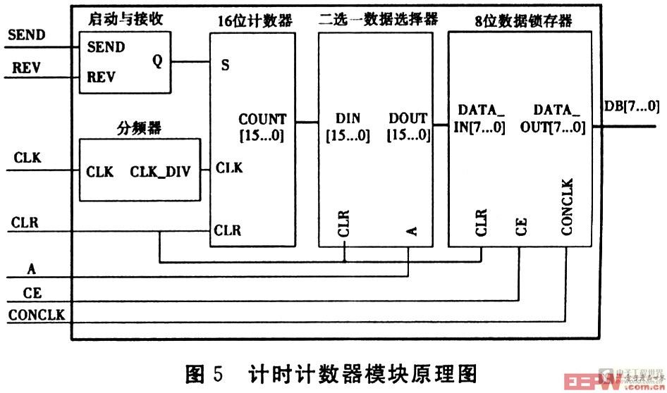 (3)采用FPGA与AT89C51结合的方案,由FPGA来完成多路超声波传播时间的精确测量,AT89C51完成信号的启动以及数据的处理。与常规系统相比,虽然增加了FP-GA硬件,但是系统也舍弃了一些系统所采用的温度补偿模块,大大提高了系统的精度和系统的灵活性。