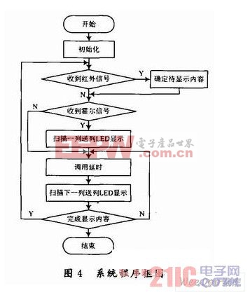 LED,进而以点阵屏的形式显示相应内容。系统主体流程图如图4所示。