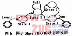 在Verilog HDL程序设计中,需要设计一个状态机来完成同步Slave FIFO写的时序,写时序如下;1)IDLE:当写事件发生时,进状态1;2)状态1:使FIFOADR[1:0]指向IN FIFO,进状态2;3)状态2:如果端点FIFO满,在当前状态等待,否则进状态3;4)状态3:驱动数据到数据线上,使SLWR有效,持续一个IFCLK周期,进状态4;5)状态4:如需传输更多的数,进状态2,否则进入IDLE状态。