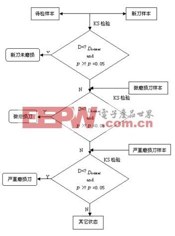 测系统界面 2.2 数据分析与管理 监测系统对各个传感器拾取的加工信号进行实时采集,并对采集到的信号进行数据分析,其中对测点主要包括时域分析、频域分析、时频分析和时间序列分 析,同时运用NI公司提供的Sound and Vibration工具包进一步将采集到的声音和振动信号做声音和振动级别测量、频率、顺态分析和倍频分析。将得到的各个传感器信号的特征值录入数据库。 数据库管理系统能够实现对信号特征数据的查询、管理及调用,系统还可根据不同需要做相应变动已达到最终目的,可扩展性强。其数据分析界面、数据库管理界面 和部分数据分析原程序分别如图5、6,7所示: 图5 数据分析界面 图6 数据库管理界面 图7 数据分析部分程序界面 2.3 MQL系统的模糊控制实现 模糊控制模块设计采用NI公司的LabVIEW PID 工具包,模糊控制算法直接在Labview软件内实现,采用查表法,使模糊控制器可以保证控制的实时性。控制过程是:切削过程中的各类加工信号通过NI PCI-6220采集卡以数字信号的形式被采进主控计算机后,并对其进行预处理求其特征值,在主控计算机的Labview环境中,与设定的标准值比较后求 出误差和误差的变化,通过查询事先做好的模糊控制表,得到一个模糊控制的输出量,再通过NI PCI-6220的一个数字输出口,从而控制MQL系统。图7为模糊控制的核心程序框图。 图8 模糊控制的核心程序框图 2.4、基于KS(Kolmogorov-Smirnov)智能刀具磨损状态识别 Kolmogorov-Smimov检验(KS检验)是一种非参数统计,它用于描述两个独立统计样本的相似性,目前已成功运用于航天、生物工程等许多领域。项目将KS检验的方法应用于刀具磨损状态识别,取得了满意的效果,且效率较高,完全可以满足在线智能诊断的要求。 从采集到的数据中分别提取如下三种不同磨损刀具的振动信号分别记为样本A(新刀振动数据)、样本B(微磨损刀具振动信号)和样本C(严重磨损刀具振 动信号),时域波形见图8到图11。在从严重磨损刀具振动信号中取一段信号记为样本D,样本D是待识别的振动信号,用来进行磨损识别检验。上面所有样本信 号产生的切削三要素、工件材料等切削条件都相同。样本信号都经过预处理的样本数据。样本数据的长度都为1024个数据点,采样频率为20KHz。 首先,要准备磨损样本识别库,将不同磨损划分刀具的振动信号存入磨损样本实例库中,这样就得到三种磨损(新刀、微磨损、严重磨损)状态库。在相同的切削条件下,将待检样本D按照图12流程进行分类识别。 表1 样本A、样本B和样本C的KS检验统计值表 从表1中可知,在取统计距离D=0.0601,显著性水平 图13磨损状态识别流程图 三、总结: 虚拟仪器以计算机为统一的硬件平台,配以具有测试和控制功能硬件接口卡,通过系统管理软件的统一指挥调度来实现传统测控仪器的功能。与传统仪器相 比,虚拟仪器在智能化程度、处理能力、性能价格比、可操作性等方面都具有明显的技术优势。本文利用虚拟仪器技术,建立了刀具磨损的在线监控系统,实时掌握 并控制加工进程中的状态,并能够动态地采集、存储和分析数据,经多次试验认证可以准确地监控刀具磨损状态,避免一些危险状态的出现,具有实际工程的应用价值。