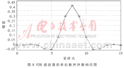 系统仿真的时序图如图5所示。所设计FIR滤波器的幅频、相频、单位脉冲冲激响应如图6~8所示。
