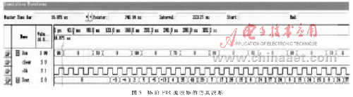 设输入序列为{99,0,0,0,70,0,0,0,99,0,0,0,70,0,0,0},滤波器的系数为{-12 -18 13 29 -13 -52 14 162 242 14 -52 -13 29 13 -18}。仿真结果如图5所示。