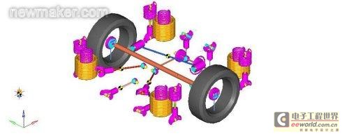悬架模型所使用的组成几何体从MotionView软件库中直接提取,建立的悬架模型与所需要的模型之间存在差别,导入到CATIA及AUTO CAD等CAE软件,进行位置、质量和转动惯量等参数的修改,就可以得到与整车参数相匹配的悬架模型。