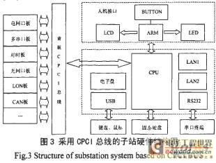 CPCI技术广泛应用在军事、航空航天、高速数据通信等需要高速运算以及具有高可靠度要求的应用领域。 3 子站CPC I装置的结构 通过以上介绍,CPCI系统在电磁兼容、总线速率、可靠性和可扩展性等方面都适合于智能电网对子站硬件的需求。图3给出了采用CPCI总线技术的子站装置结构图。 3.1系统板 装置的系统板可根据变电站规模、对功耗的要求等灵活选择X86架构的或PPC架构的CPU。配合适当的内存和接口,可以满足子站对数据处理的 图3 采用CPCI总线的子站硬件结构图 本文装置的系统板采用Pentium M 1G CISCCPU,带32K一级缓存,512K二级缓存,前端数据总线速度266/333 MHz。采用无风扇表贴散热片散热结构,消除风扇故障的风险。系统板使用板载表贴内存512 M,比以往的卡式内存降低了接口风险,提高系统可靠性。另外系统板上提供普通IPC标准配置中的所有接口,如VGA、LAN、USB、RS232等,通用性好,能够像普通IPC一样使用,操作人员上手快,维护简便。系统板占用系统槽的J1、J2接口,可以从后IO扩展所需的接口,本装置使用J2扩展人机接口。系统板安装了电子盘作为系统启动盘兼数据存储,也可选装固态硬盘作为数据存储后备。此外,系统板具有2个100 M或1 000M的以太网口用于接入主站或接入站内的装置。 3.2网口板 根据图1,子站运行时与多个分站或主站通信,把故障信息上送给调度人员并接受主站下发的查询命令。同时子站还要与变电站内的保护、录波器相连,采集需要的信息。一般情况下,分站、主站以及变电站内的装置分处不同的网段,因此需要子站硬件具备多网口通信能力。 本文装置设计的电网口板一个可扩展4个网口,采用4片Intel82551作为网络通信芯片,分别连接4个10/100 Mb自适应网口,自动识别交叉或直连线,该芯片支持多优先级传输队列和VLAN,可以满足IEC61850对虚拟网的要求。芯片采用BGA封装有利于散热。网口板上的4片82551通过PCI—PCI桥芯片连接到背板总线。 为了适应数字化变电站对光网口的需求,本文装置还配备光网口板,每个光网口板包含3个光网口,采用Intel82551与DM9301配合实现光网接入任务。 3.3 Gps对时板 数字化变电站中的带时标数据通过以太网以数字方式传输,站内装置对时是非常重要的。子站属于变电站通信逻辑的间隔层,应该执行与保护和控制事件用时间同步要求。T1时间性能类的精度要达到1 ms,而T2时间功能类的对时精度要达到0.1 ms。 Gps对时板能接收来自TTL/RS485/AC电气形式的IRIG.B码时钟信号,通过智能解码,校对系统时间。对时卡采用现场可编程门阵列(FPGA)进行解码,FPGA具有逻辑单元灵活、集成度高、能随意添加和扩展功能模块、编程简单、升级方便等优点,对于IRIG.B解码仅用简单逻辑电路就可以完成,FPGA采用并行流程解码,速度能达到100MHz。板卡还增加了时间自动修正功能,其对时精度达T3级以上,能完全满足数字化变电站对子站对时T2级精度的要求。 3.4串口板 在对传统变电站的数字化改造过程中,站内存在大量传统的装置,这些装置很多并不具备以太网通信能力,而是通过串口输出信息的。为了接入这些装置,予站需要具备串口通信能力,串口板就是负责完成这一任务的。 对比工控机扩展串口时使用IO访问方式的UART,由于其工作方式是查询发送接收,进入发送接收进程时CPU会处于等待状态,因而CPU占用高,影响系统整体性能。本文装置使用PCI总线芯片扩展串口,含有比以往串口芯片多3倍的FIFO。通过中断方式发送接收,发送数据后释放CPU,降低了CPU占用率,经过实际测试,同时以9 600波特率向一个板卡上8个串口发送1 Mbytes大小的文件,装置接收并显示接收内容,CPU占用资源小于1%。 每个串口板采用标准CPCI接口与母板连接,能够很方便灵活地在任意槽位任意扩展串口板。通过在软件上修改底层串口驱动并辅以跳针,串口板上的任意一个串口都能够独立地切换成RS232/RS485通信方式,提高了串口板的适应能力。 3.5人机接口 本子站装置设计了人机接口板,负责前面板装置指示灯的显示。同时为了满足不同地区用户需求的差异,人机接口板还可接入液晶显示器和按键,以实现对信息的直接查询,如查询修改其他装置IP地址、查询其他装置当前事件、查询与其他装置通信状态等。 人机接口使用ARM7芯片作为CPU,内嵌小型实时系统UCOS.II,人机接口板与系统板通过串口通信获取需要的信息。人机交互面板隔离芯片和静电释放电路,保障系统的安全运行。 3.6存储 配合子站的存储要求,本文装置可扩展固态硬盘作为数据后备,硬盘同样以板卡形式插
