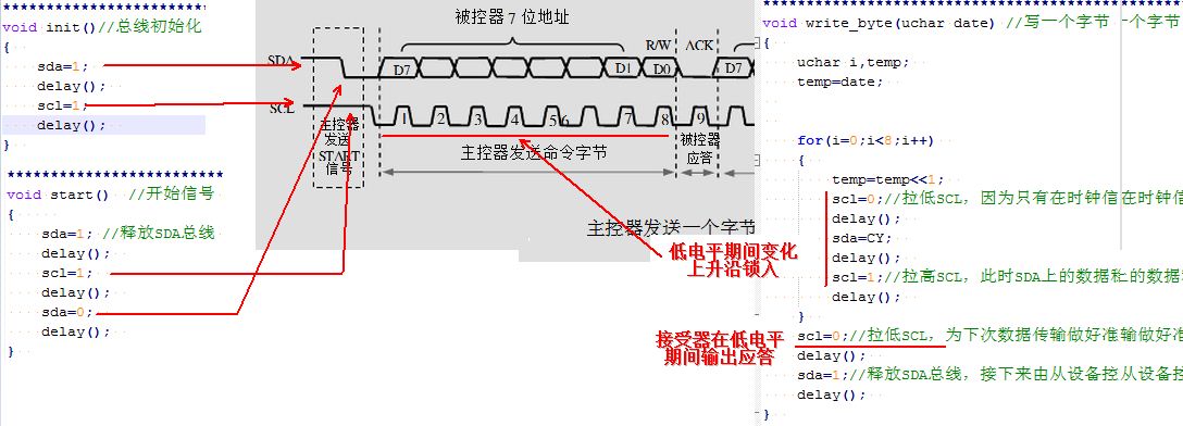 为了加深对I2C总线的理解,用C语言模拟IIC总线,边看源代码边读波形:
