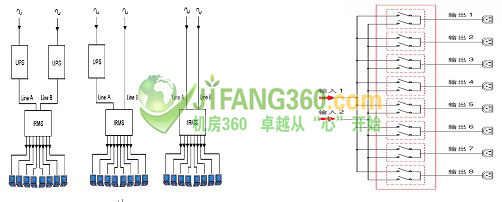 ? 该模块可实现两路16A冗余供电(UPS、市电),A、B两路可自由设定主、辅回路,即可是两路UPS、或两路AC、或一路UPS、一路AC。