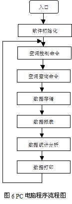 件:本地(远地)PC电脑的网络空调监控软件是用VC6.0开发的,在Windows95/98 或Windows-NT平台上的交互式视窗应用程序。这是由于用VC6.0开发的软件运行速度快、数据处理能力强和操纵界面友好的原因。软件设计流程见图6。