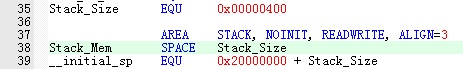 修改启动文件中的中的第39行,把__initial_sp 修改成__initial_spEQU 0x20000000 + Stack_Size