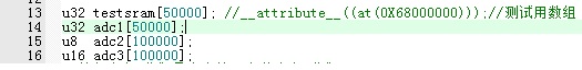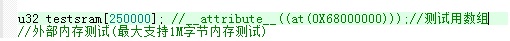 可以看到testsram这个大数组自动编译到外部sram的0x68000000这个地址上。我们再试试再定义几个大数组看看
