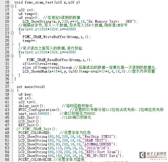 再把原子哥的外部SRAM的初始化注释掉,因为前面已经在System_init已经初始化了。其实这里我们可以把原子的SRAM.c文件去掉不用它了,我这里没去掉,其实只是为了能正常调用fsmc_sram_test()来测试实验结果