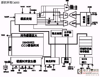 CMOS彩色图像传感器OV7620将CMOS光感应核与外围支持电路集成在一起,具有可编程控制与视频模/数混合输出等功能,能够消除噪声、灯光闪烁等光电干扰,输出清晰、稳定的彩色图像。OV7620的功能特点包括:单芯片1/3寸镜头,最大664×492像素分辨;I2C控制,标准SCCB接口;开窗功能,局部图像输出;输出RGB/RawRGB/YCbCr视频信号;自动曝光控制/自动白平衡/自动增益控制/自动亮度控制;图像质量控制,包括颜色饱和度、锐度、伽马校正等。