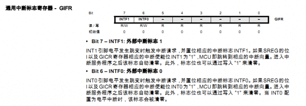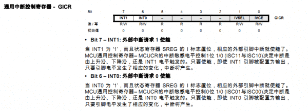 /** 函数库说明:ATMEGE8 INT1中断程序 * 版本: v1.0 * 修改: 庞辉 * 修改日期: 2011年08月01日 * * 说明: 无 * * 版本更新: * *注意: button PD3 * LED PD5* buzzer PB1 */#include avr/io.h>#include interrupt.h>int main(void){//PD3外部中断1口设置为输出DDRD &= ~(1 < DDD3);//PD3上拉电阻使能PORTD |= (1 < PORTD3);//蜂鸣器控制口为输出DDRB |= (1 < DDB1);DDRC |= (1 < DDC5);//INT1 下降沿触发MCUCR |= (1 < ISC10) | (1 < ISC11);//INT1 中断使能GICR |= (1 < INT1);//使能全局中断sei();while(1){}return 0;}//外部中断1服务程序SIGNAL(SIG_INTERRUPT1){PORTB ^= (1 < PORTB1); PORTC ^= (1 < PORTC5); } atmega8INT1外部中 相关文章: