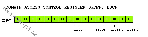 在下面的例子中,我们的DOMAIN ACCESS CONTROL REGISTER都被初始化成0xFFFF BDCF,如下图所示: