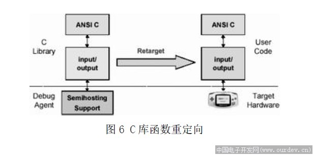 举例来说,用户有一个I/O设备(如UART)。本来库函数fputc()是把字符输出到调试器控制窗口中去的,但用户把输出设备改成了UART端口,这样一来,所有基于fputc()函数的printf()系列函数输出都被重定向到UART端口上去了。