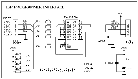 第二、ISP接口问题:得弄清下载接口的对应接线,MOSI、MISO、RST、SCK要一一对应不能弄错。也就是说你原先并口下载线的并口各功能线接到十针的ISP接口和USB-ISP下载线的接口要对得上。例如我的51板是自己做的,上面的十针下载接口是我自己随意接的没有按照什么标准。因此我做并口下载线时,就将并口下载线上的各功能线与51板上的一一对应,这样就能调试通。现在做USB-ISP下载线还是一样,得按照我自己的十针接口方式,只要各功能线准确无误地对上就好。