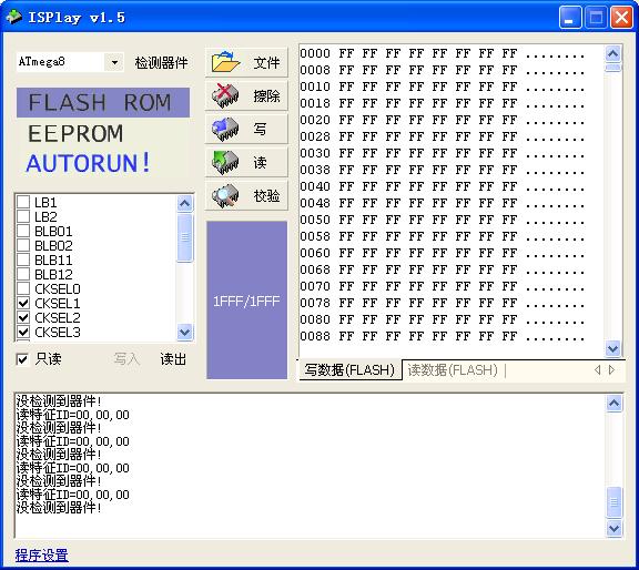 事先我将配置文件Pin_config.ini内的各功能线已修改为和我的并口下载线相同的脚号。在左下角的“程序设置”里选好那个配置