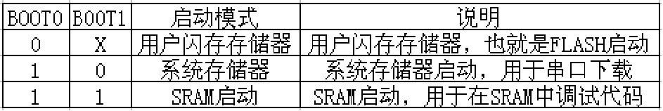 1、系统上电,BOOT0需为L,进入模式一。上电复位后,在SYSCLK的第4个上升沿,BOOT引脚的值将被锁存,进入主闪存存储器,执行我们烧写的代码。