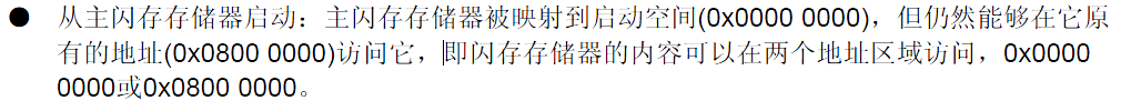 从另一个方向来理解它,可以这么说:主闪存存储器从地址(0x0800 0000)访问,不管是系统自动的还是软件配置的,只要系统指针跳到主闪存存储器的地址(0x0800 0000)处开始执行代码,就可以了,结果是我们想要的。