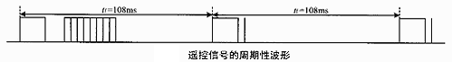 当一个键按下超过36ms,振荡器使芯片激活,将发射一组108ms的编码脉冲,这108ms发射代码由一个起始码(9ms),一个结果码(4.5ms),低8位地址码(9ms~18ms),高8位地址码(9ms~18ms),8位数据码(9ms~18ms)和这8位数据的反码(9ms~18ms)组成。如果键按下超过108ms仍未松开,接下来发射的代码(连发代码)将仅由起始码(9ms)和结束码(2.5ms)组成。