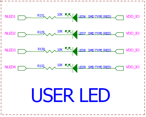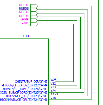 其中NLED1234,和s3c6410的GPIO引脚相连,如图: