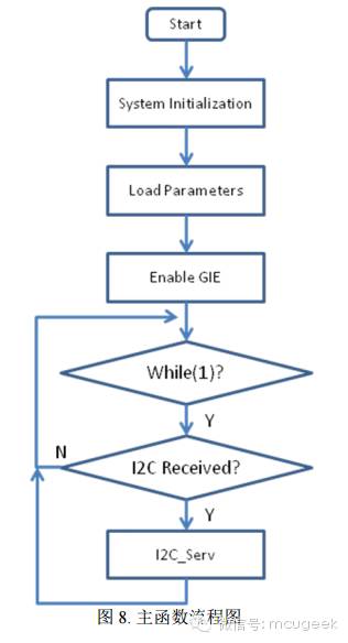 在主函数中,主要完成系统的初始化工作,并从 INFO Flash 中载入 TV 背光和 3D 红外发射需要的参数到 RAM 中。然后进入循环查询模式,等待主机I2C 命令操作。