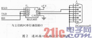 考虑到本设计通信距离>100 m的适用要求,在系统中选用RS485。MAX485是由Maxim公司生产的一种低功率RS485接收发送器,其是将TTL电平与RS485标准电平相互转换。由于本系统的通信采用RS485标准,因而,在硬件电路中采用MAX485芯片。该芯片能驱动32个接收器件,因此可达到多个检测器的设计要求。