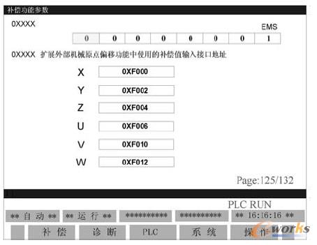 (1)补偿功能启用和补偿值输入接口地址界面。如图3 所示,通过对补偿功能启用参数EMS设置,决定CNC 是否启动实时误差补偿功能,该项设置可通过CNC 检索系统是否包含实时误差补偿模块而自动进行设置。