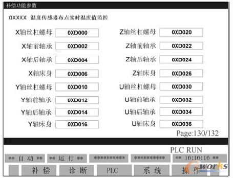 (5)温度传感器布点实时温度值监控地址界面。实时误差补偿模块能够对机床的不同温度状态进行实时误差补偿,可配合温度传感器和温度采集模块使用。温度传感器的可靠性通过阈值判断及温度报警实现。温度传感器布点实时温度值监控地址界面如图5 所示。温度数据除了作为实时误差补偿模块进行补偿值计算的变量参数使用外,还可提供给机床一种监控各重要运动部件、冷却液以及环境温度的手段,便于进一步研究机床各种加工工艺条件下各部件发热对机床热变形的影响。对于机床特殊位置需要布置温度传感器的,可扩展温度采集模块和温度传感器,并在界面上增加相应布点说明,在RAM 中对应定义相应检索号和缓存地址。