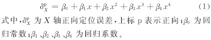 以X 轴正向定位误差为例,根据回归理论可设误差模型为