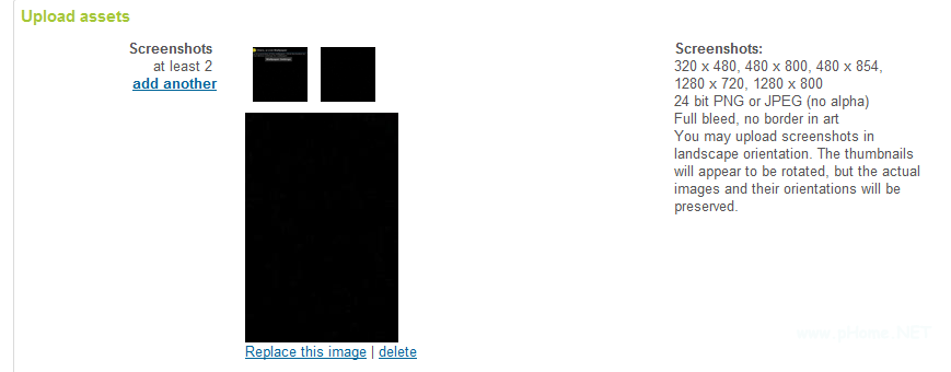 Android市场需要两张截图。理想的情况下,它们应该是从一个高分辨率的设备上截的图。无论如何,这些必须是适用在常见屏幕分辨率的设备上。它们应该是一张完整的截图,不能有美术处理,也不能有边框。