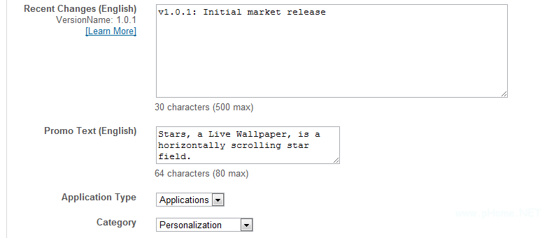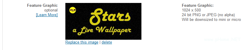 Android市场允许你提供一个小的宣传图形。当应用程序有最新版本的时候,谷歌可能会在任何地方使用它。虽然这是可选的,还是强烈推荐。图形不能包含边框。