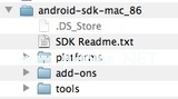 1、解压Android SDK。你应该看到一堆文件夹和文件,包括Platforms,Add-ons和Tools。