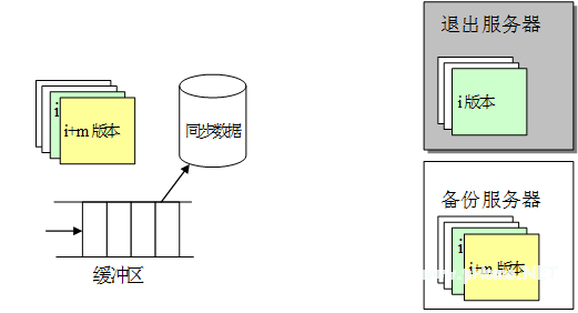 首先,我们来分析一下系统退出后数据的情形,主要涉及到退出的服务器和正常的主服务器与备份服务器,如图 4 所示: