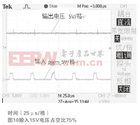 占空比相同时,随着输入电压的升高,输出电压也在升高。验证结果与理论相符,设计方案切实可行。
