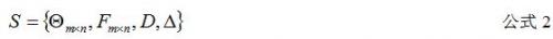 公式2中Θm×n 代表将指纹图像划分为m×n块以后,由指纹图像每一子块局部脊线方向场组成的角度矩阵;Fm×n代表指纹的局部脊线频率矩阵;D代表以指纹核心点P(Cx,Cy)为中心,固定半径R内所有细节点到核心点距离的平均值;Δ则代表离核心点最近的三个细节点(设M1, M2, M3)的方向角与核心点方向角的差值,记作Δ={ω1, ω2, ω3}(ωi=θi-θc,且-π<ωi<π)。
