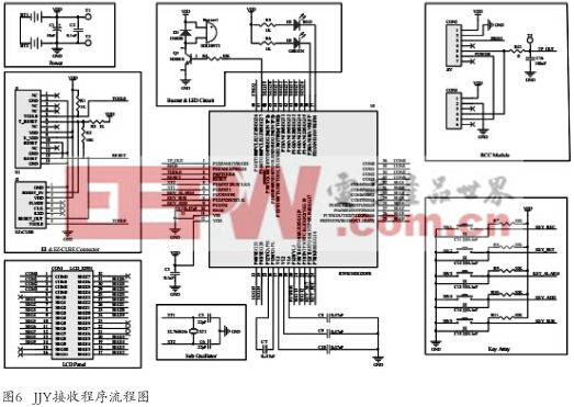 JJY 数字电波钟具有显示单元,按键输入单元、闹钟响铃输出单元、时间电波接收单元以及 LED 状态指示单元,其硬件原理如图6所示。(未完待续)