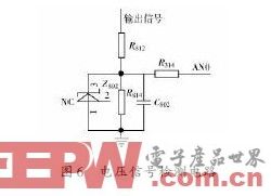 输出信号是电机驱动模块根据测试设备的指令输出不同的电压信号,测试设备需要对输出的电压信号进行检测.检测电路如图6所示,稳压二极管防止波峰电压过高,电容用来滤波.