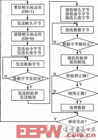 具体方法为:主机首先禁止奇偶校验,同时设置奇偶校验位为Mark标志(相当于设置帧头标志位DS为1),再向从机发送帧头(地址)。此时,正处于帧头(地址)监听状态的从机收到主机发来的帧头(地址)后,进入中断服务例程,读取主机发送的帧头(地址)是否正确,当确认正确后,从机进入数据接收状态并等待主机发送数据;否则,仍处于帧头(地址)监听状态并等待主机发送下一个帧头(地址)。主机接着禁止奇偶校验,同时设置奇偶校验位为Space标志(相当于设置帧头(地址)标志位DS为0),再发送数据,进入数据接收状态的从机将正常接收所有数据,然后向主机发送响应报文,最后释放总线并重新进入帧头(地址)监听状态。