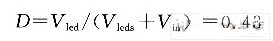每个LED灯工作时压降约为3 V,当有3只LED灯串联在输出端时,驱动器输出电压Vled=91 V。可得LED满电流工作时Q1管的控制信号占空比D为: