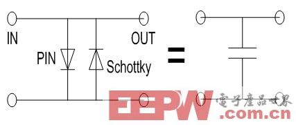图1:肖特基强化PIN限幅器的常见电路安排和它的小信号等效电路。