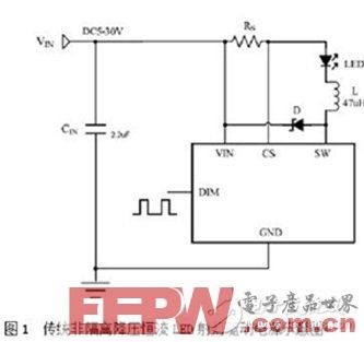 针对LED照明负载特点,目前非隔离式的恒流驱动电源的拓扑结构基本上是BUCK降压结构,传统的方案是通过固定关断时间来固定峰值电流,从而达到固定输出电流的控制策略。