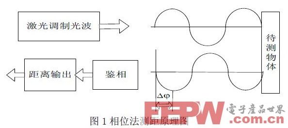 图 1 为相位式激光测距原理图,其中Δφ为信号往返时相位延迟不足2π 的部分,其中φ= 2Nπ + Δφ,N 为激光往返所包含的波长的个数。于是,在给定调制频率的情况下,距离的测量就变成了对激光往返一次所包含整数个波长数量的测量和不足于一个波长的相位的测量。随着现代无线电测相技术的发展,相位测量可达很高的精度,所以相位式激光测距也能达到很高的精度。