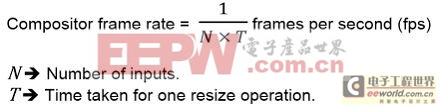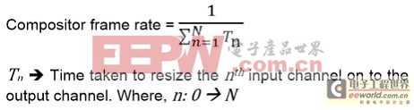 针对将N个输入帧合成到一个输出帧的应用而言,它必须在一个帧周期内完成N次尺寸调整操作。这些缩放器非常高效,可以在可接受的时间限制内完成缩放处理。合成帧的输出帧速率取决于单次缩放操作所占用的时间。