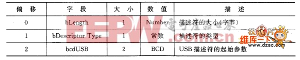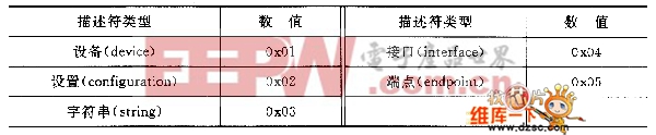 为了描述不同的数据,就须以不同类型的USB描述符来加以描述,如图1所示。虽然各个描述符都有不同的信息与数据,但所有的描述符都有一些共同的特性,也即是由如表1所列的格式所组成。其中,所有的Byte o是以字节为单位的描述符长度,而所有的Byte 1 则放置如表2和表3所列的描述符类型值,紧接着的其他字节,则随着不同的描述符而不同。如果该描述符的长度比规范上所定义的还要小,那么主机将会忽略。如果此大小又比规范所定义的还要大,那主机也会忽略所超出的字节,并在其回传的真正描述符长度的尾 端开始寻找下一个描述符。