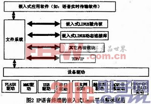 嵌入式IP吾音终端使用的嵌入式Linux平台可分为三个层次:应用软件层次、Linux内核层次和设备驱动层次。其中平台无关部分包括:Linux实时内核、文件系统、应用软件等部分;平台相关部分包括:硬件驱动的改造和启动过程改造,我们需要针对不同平台进行代码改造,