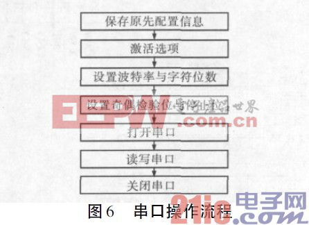 串口设置主要设置struct termios 结构体成员,具体的串口操作函数此处略去,串口操作流程如图6 所示。